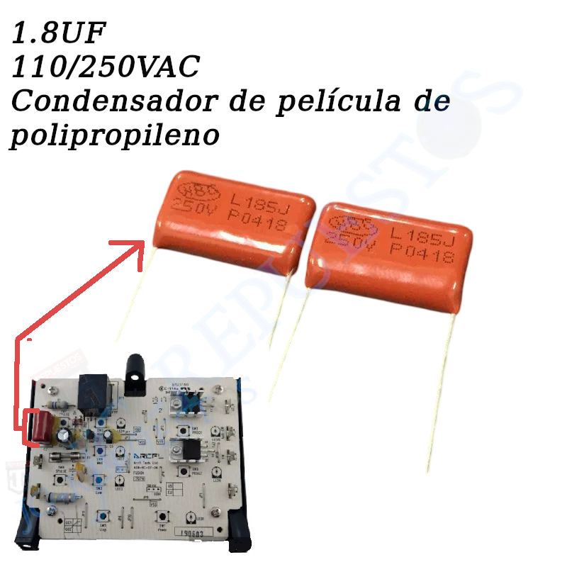 CAPACITOR/CONDENSADOR POLIPROPILENO/POLIESTER L185J 250V 1.85UF -0754-3