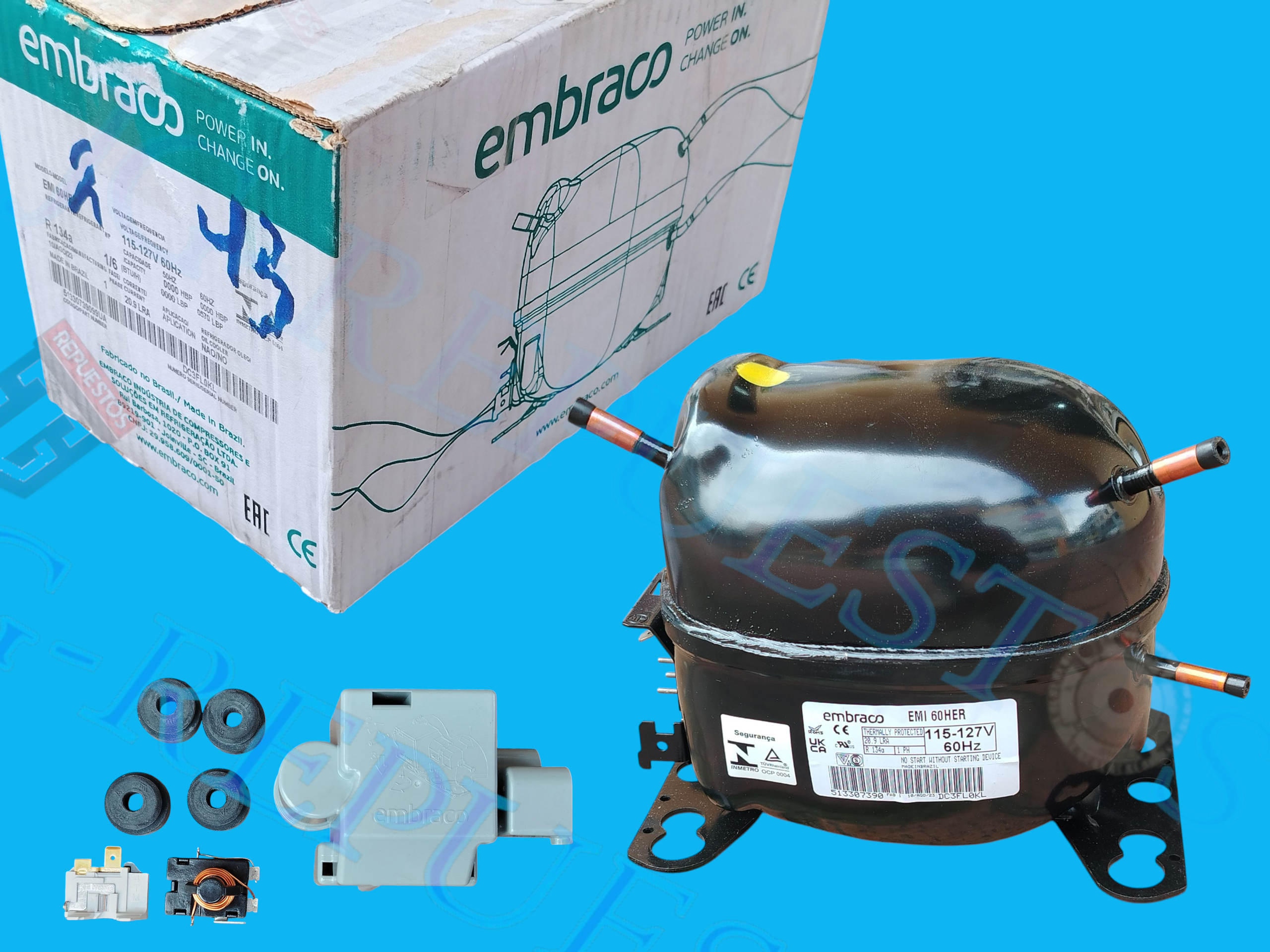 MOTOR O COMPRESOR EMBRACO 1/4+ HP R134A ORIGINAL REFRIGERADORA TODAS LAS MARCAS -22107