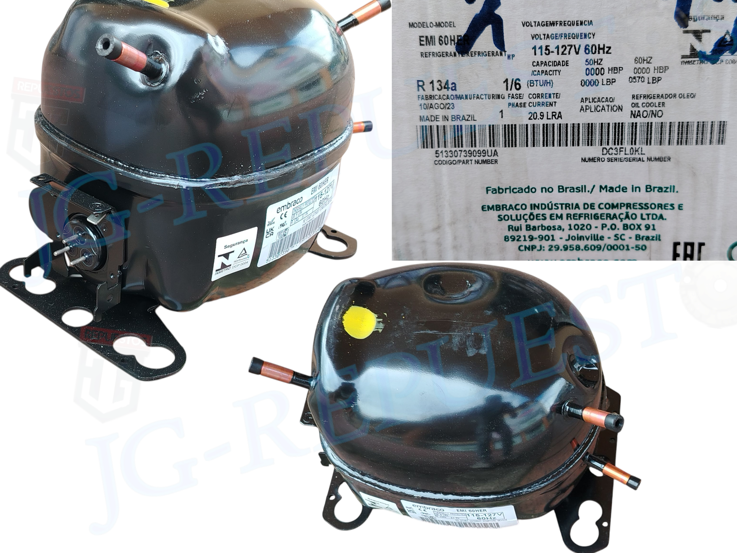 MOTOR/COMPRESOR 1/3-3/8 O 1/3+ HP – R134A – LBP/MBP ORIGINAL EMBRACO REFRIGERADORA -2284
