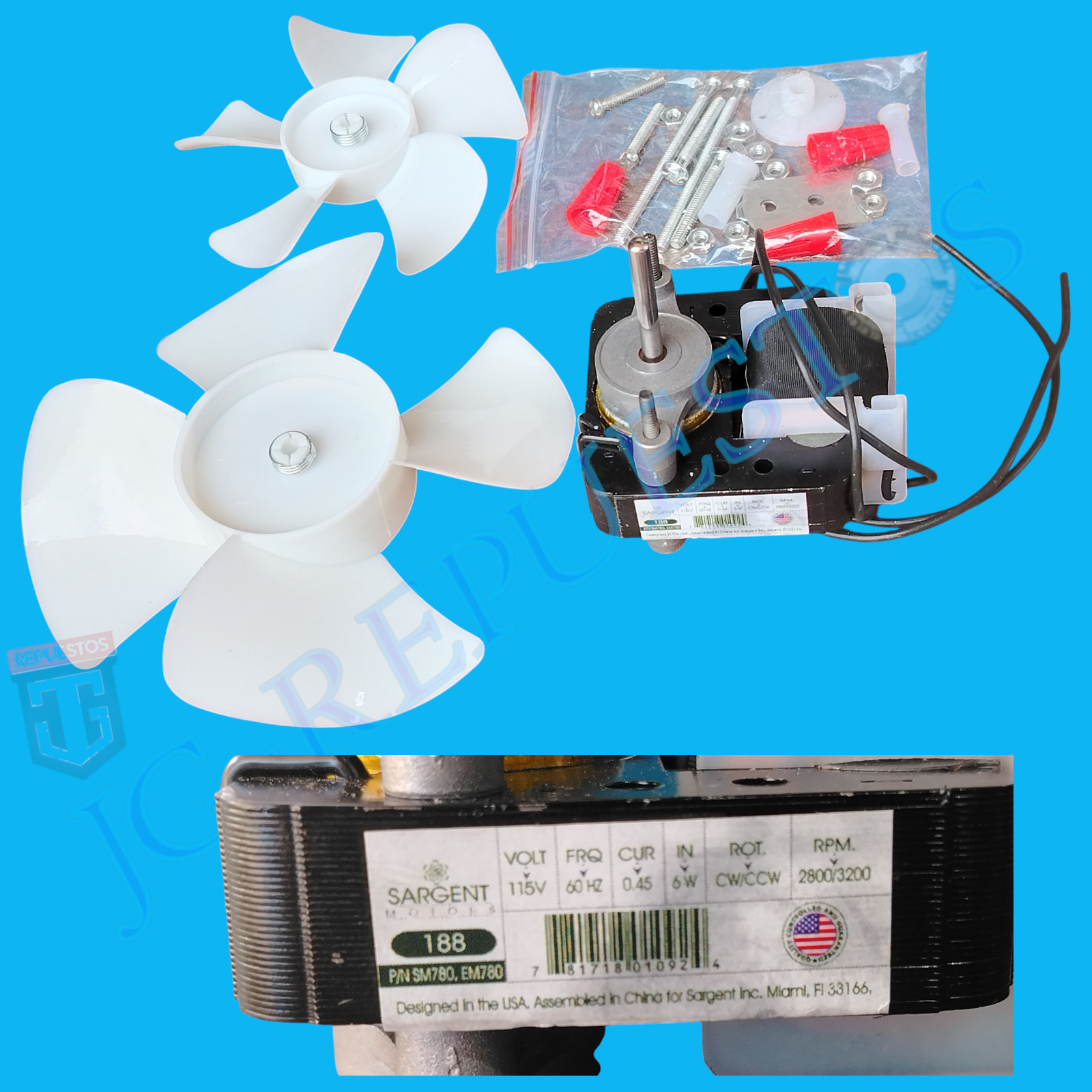 INCLUYE 2 HÉLICES PLÁSTICAS DE 4 ASPAS VIRADAS (HÉLICE GRANDE DIÁMETRO:5.4CM – HÉLICE PEQUEÑA DIÁMETRO:3.9CM)